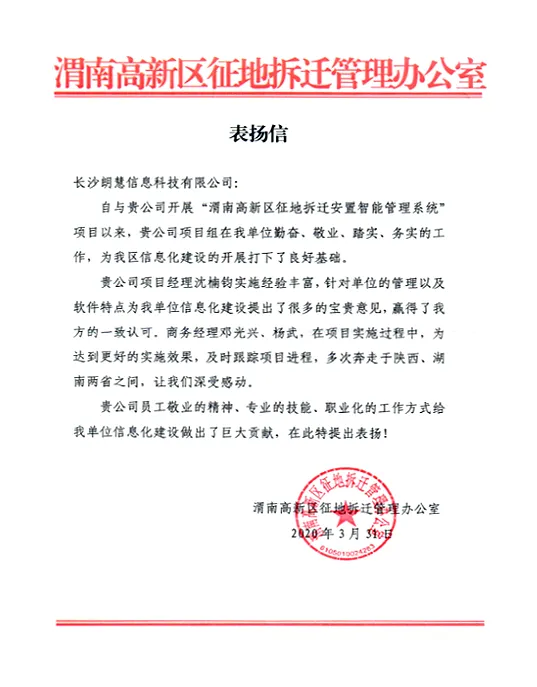 规范流程,解放人力,紧跟政企征拆业务数字化转型要求客户感谢信