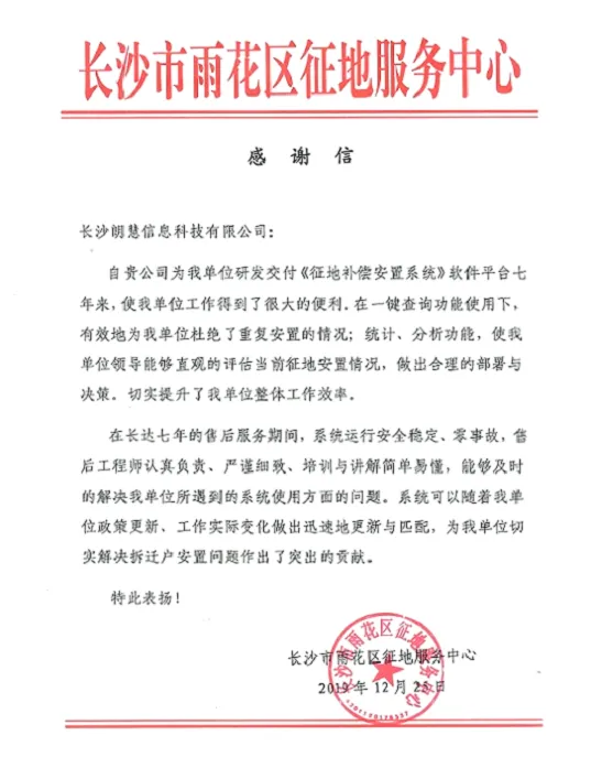 规范流程,解放人力,紧跟政企征拆业务数字化转型要求客户感谢信